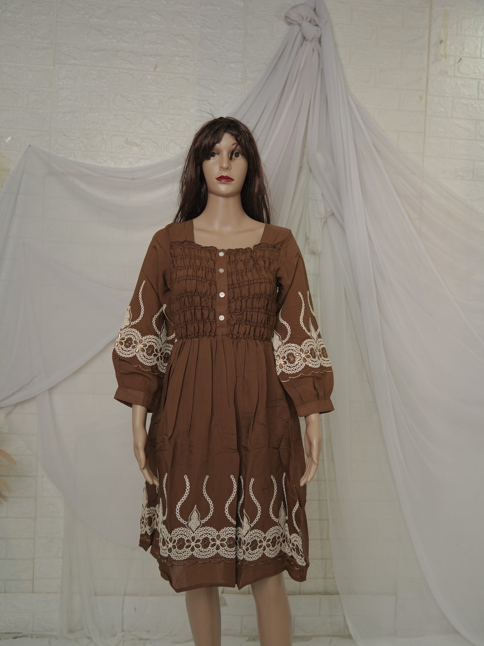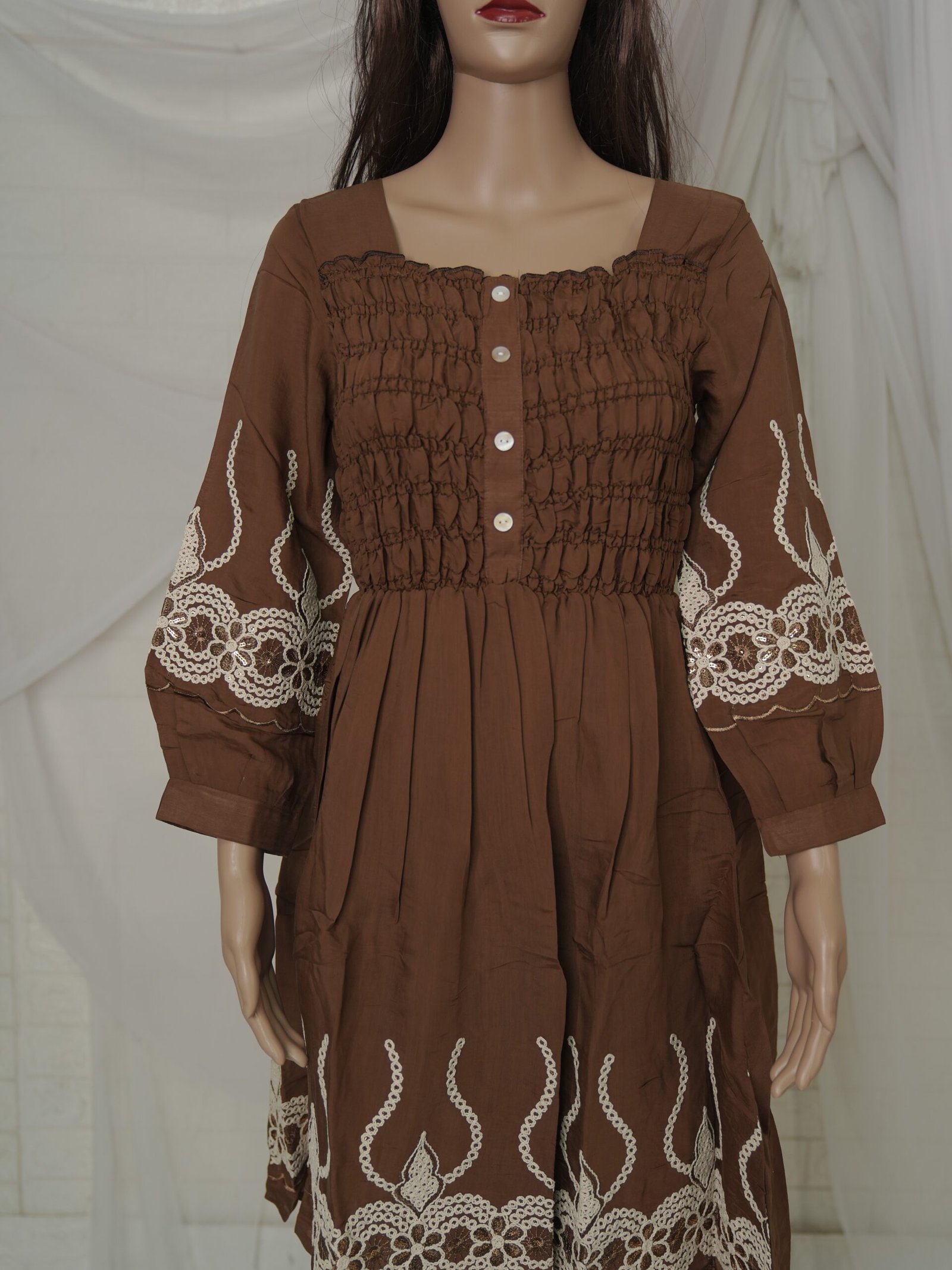 Be the first to review “Embroidered Cotton Midi – Brown”